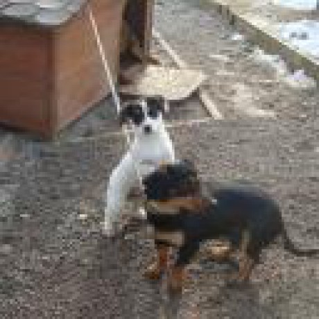 asi 1 ročná sučka jazvečíka čierno pálená krátkosrstá Našla sa so svojim 3 mesačným šteniatkom, ktoré niekto vyhodil napospas osudu medzi 24.-26.3 2012 v lese. Obom psím slečnám hľadáme im nový domov.